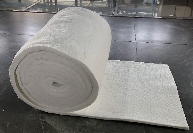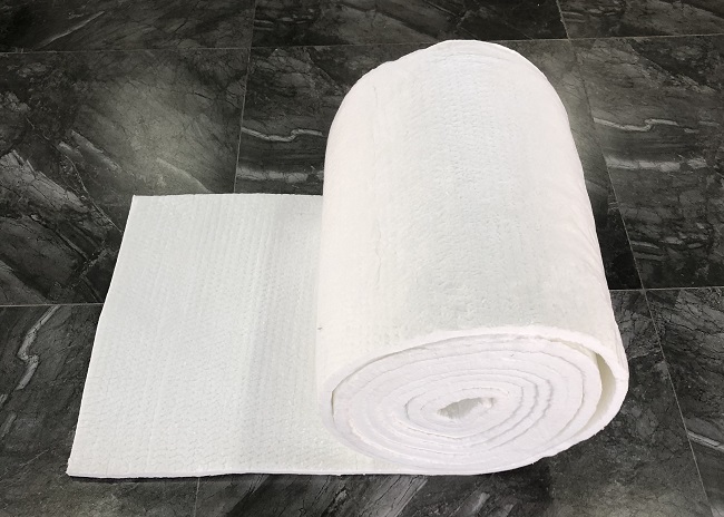 含鋯陶瓷纖維毯其主要原料是硬質(zhì)黏土熟料、焦寶石、氧化鋁硅石粉、二氧化鋯等,通過將原料高溫熔融,然后通過噴吹甩絲制成纖維,再由甩絲成纖工藝制成纖維棉,經(jīng)過針刺、熱定型、縱橫切、打卷制成含鋯陶瓷纖維毯。