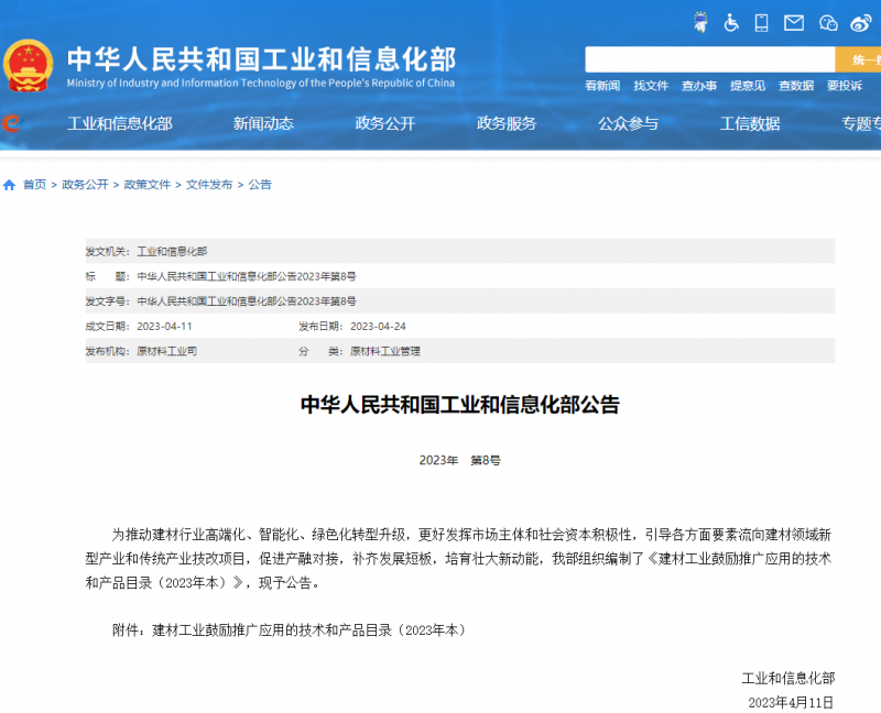 保溫復合制品、氣凝膠保溫氈、玻璃棉制品等絕熱節能材料列入《建材工業鼓勵推廣應用的技術和產品目錄(2023年本)》