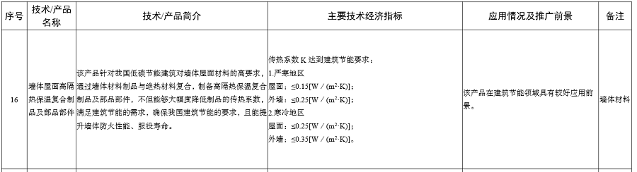 近日,工業和信息化部發布《建材工業鼓勵推廣應用的技術和產品目錄(2023年本)》,墻體屋面高隔熱保溫復合制品及部品部件、氣凝膠保溫氈、高性能微纖維玻璃棉制品及其生產技術等絕熱節能材料相關技術列入其中。如下: