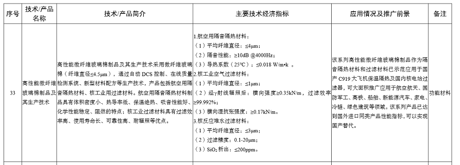 保溫復合制品、氣凝膠保溫氈、玻璃棉制品等絕熱節能材料列入《建材工業鼓勵推廣應用的技術和產品目錄(2023年本)》
